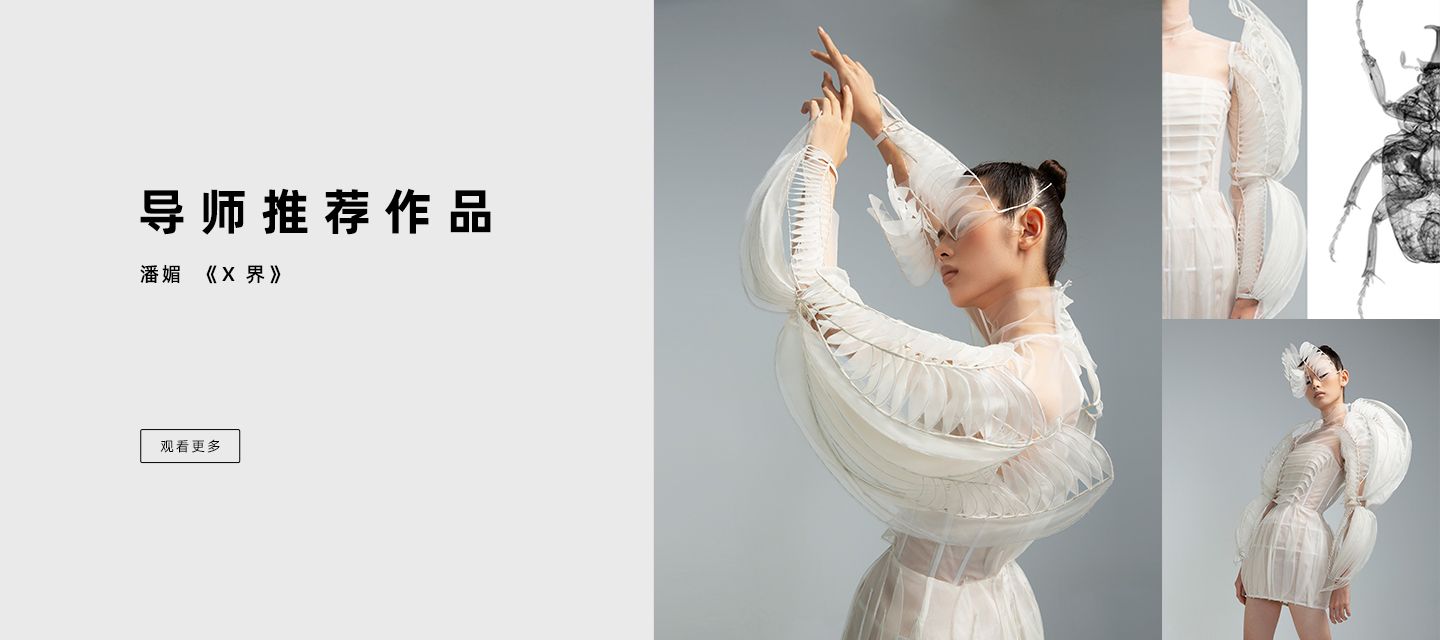 设计来源于摄影师Nick Veasey的一组“X”光下的昆虫照片,作者希望把照片中的独特美感体现到服装当中,结合了中国非物质文化遗产绢花工艺,在人体上构建出层层外化的昆虫骨骼,展现了作者眼中的“X”光下的生物世界。
