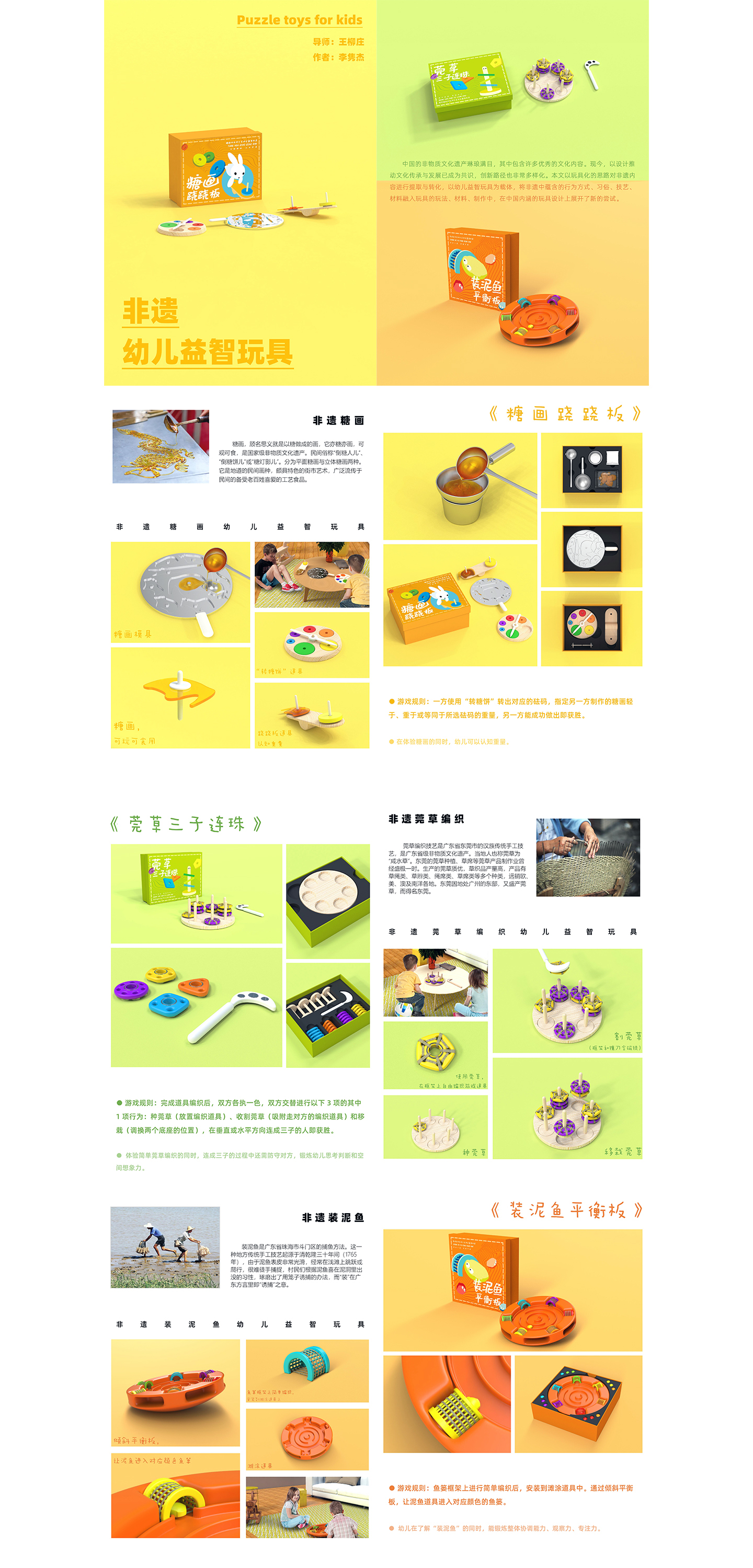 中国的非物质文化遗产琳琅满目,其中包含许多优秀的文化内容。现今,以设计推动文化传承与发展已成为共识,创新路径也非常多样化。本文以玩具化的思路对非遗内容进行提取与转化,以幼儿益智玩具为载体,将非遗中蕴含的行为方式、习俗、技艺、材料融入玩具的玩法、材料、制作中,在中国内涵的玩具设计上展开了新的尝试。