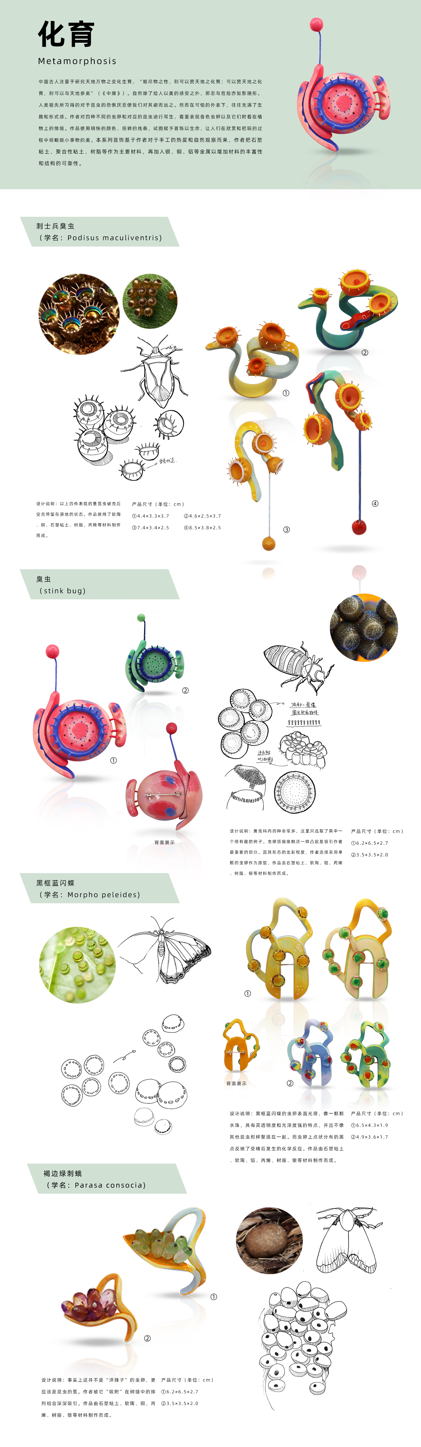 作品以一种不真实的效果,像脑内幻想世界和动画特效一样突破次元出现在人们眼前,带来新的视觉感受,让看的人一起感受到笔者在那一刻的开心情绪,每个人对灵感的定义尽显不同,所以本系列设计把灵感主题往正面感受方向发展:希望、喜悦、满足、活泼、愉快、兴奋等的情绪作为首饰所想展现的氛围,拉近作品与观众之间的距离,把灵感这种稍微不注意便一瞬即逝的时刻以笔者的个人风格呈现。